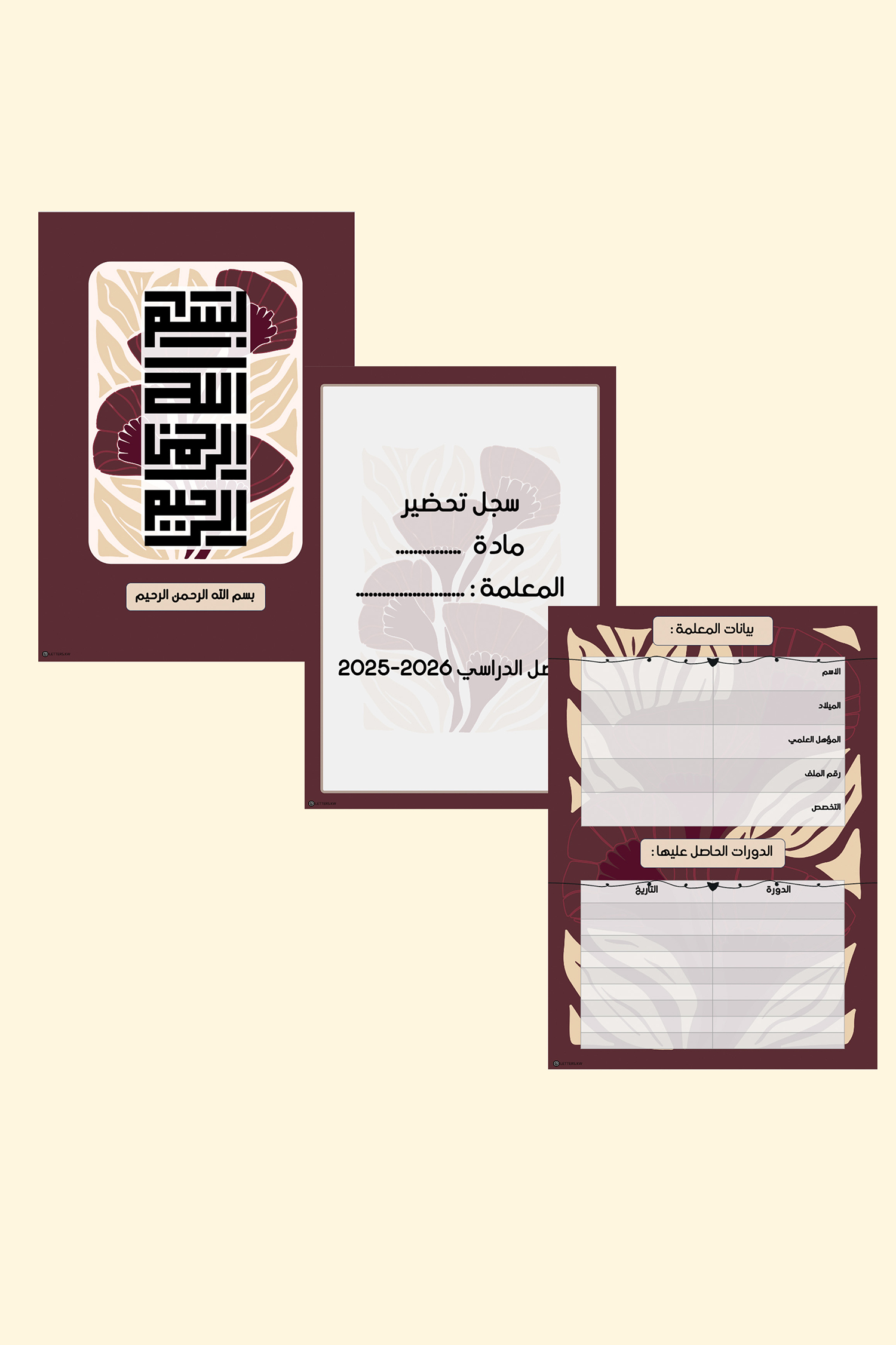 سجل تحضير مصنوع من الجلد الفاخر وأخف وزناً مع الحفاظ على نفس الجودة العالية، يتضمن تصميم أوراق إلكترونية فارغة، جاهزة للتحميل والطباعة، يتم إرسالها عبر البريد الإلكتروني بصيغتي PDF وWord. يتميز السجل بحجم A4، حلقات بقطر 4 سم مكونة من 4 حلقات. يُباع السجل بدون أوراق، ويتم طلب الأوراق بشكل منفصل.